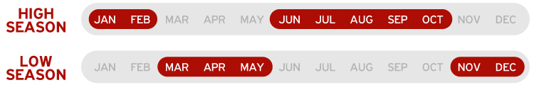 High budget prices are based on high season. There are significant discounts when you are travelling during low season.